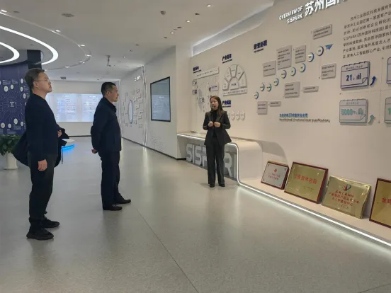 代辉董事长一行前往苏州工业园区,现场考察调研了人工智能产业园、纳米技术产业园、生物医药产业园及苏州工业园展厅,详细了解园区开发建设和园区运营管理经验。他提到,川发园区要充分借鉴苏州工业园区的成功经验,在园区投资建设和运营管理中,一是做好整体规划,始终坚持“规划先行”的指导原则,对园区的发展战略、产品定位、产业布局等方面进行深入研究分析;二是加强产业园区运营管理,完善企业服务体系,从政务服务、要素保障、生活配套等方面打造“全周期、精准化”的园区运营服务生态,助力入园企业发展壮大;三是探索产业基金投资路径,围绕园区主导产业充分依托和参与市场化基金开展产业投资,构建“园区+基金+科创+产业”的投资发展模式,以资本手段赋能企业,共享企业发展红利。